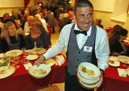 Depois do homem terminar a refeição, o empregado pergunta-lhe: